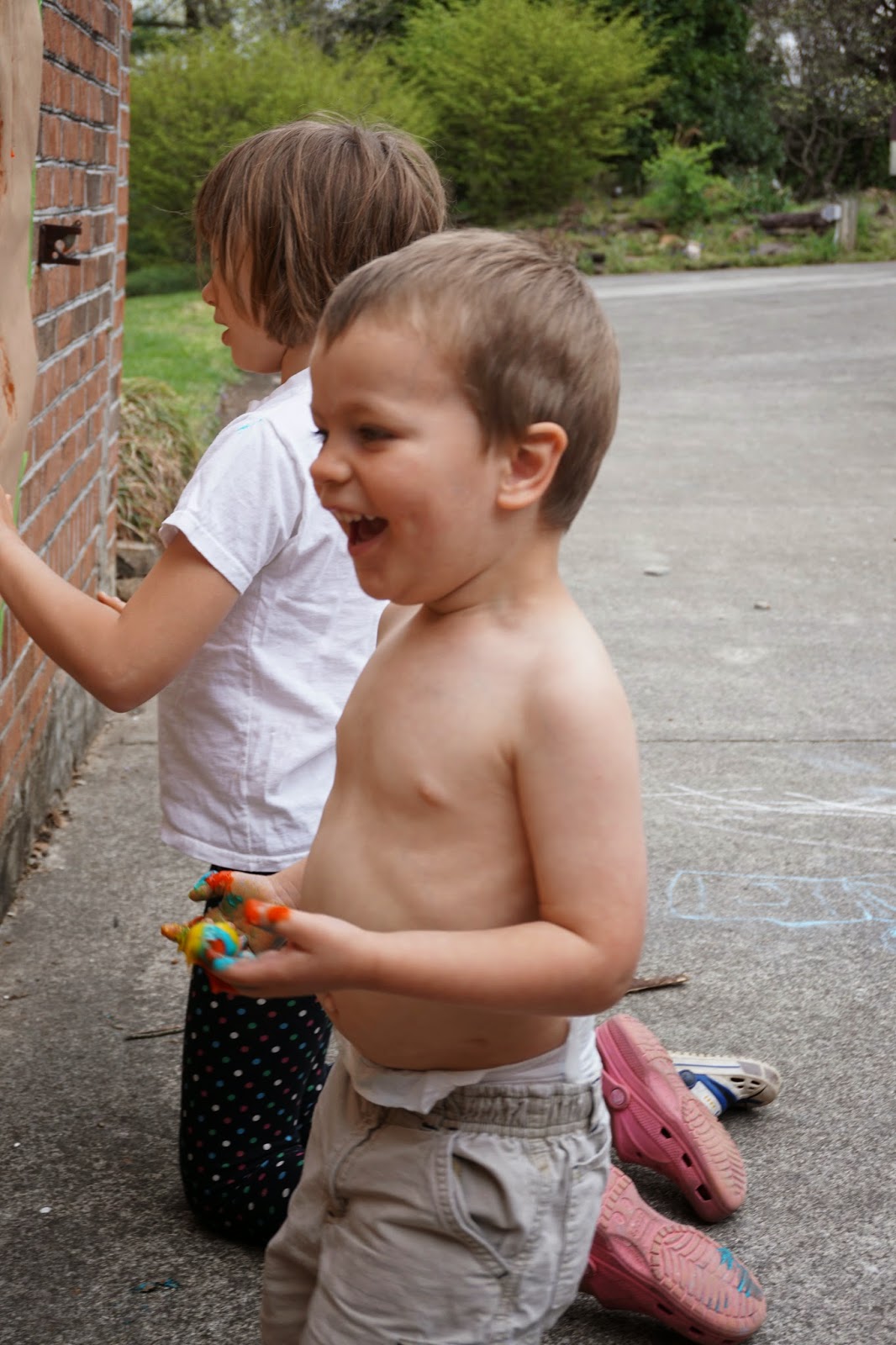 I love doing things like this, but for some reason, I don't often think of it. The last time we finger painted, we only had two kids and one of them was eating the paint. I can't believe how little they were! Except for Jack's belly. I can't believe how big that was!